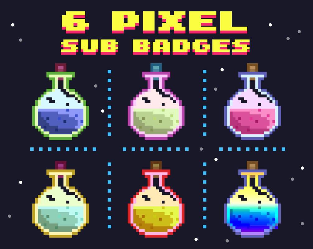 6 Twitch Sub/Bit Badges/Streamer/Badges for Streamers/Pixel Bottle/Cute Sub Badges/Cat/Sub Badges/Pixel Badges